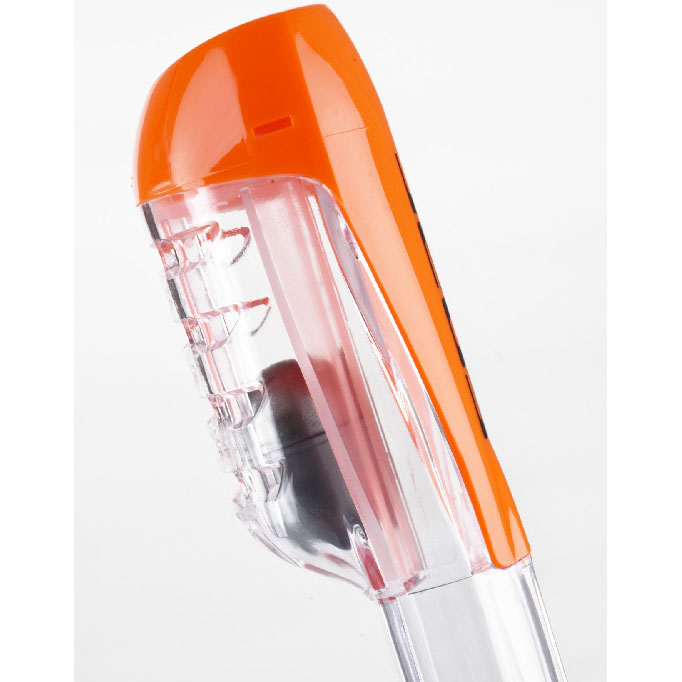 De snorkelbuis is voorzien van een dry top systeem. Dit voorkomt dat er water naar binnen komt bij onverwachte golven of spatwater. Zo blijf je ontspannen snorkelen aan het wateroppervlak.
